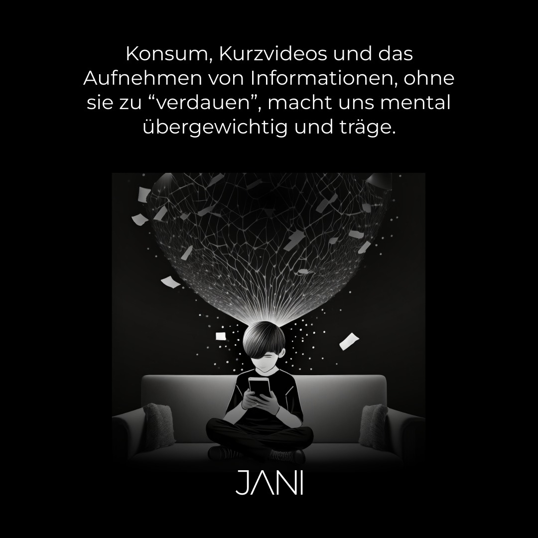 Der körperliche Teil ist mir für diesen Blog egal, aber der mentale ist kritisch. Wir gehen abends mit dem Handy schlafen und stehen morgens damit auf. Wir hämmern unser Gehirn voll mit dem Pommes- und Schokobons-Äquivalent der Social Media Welt.
