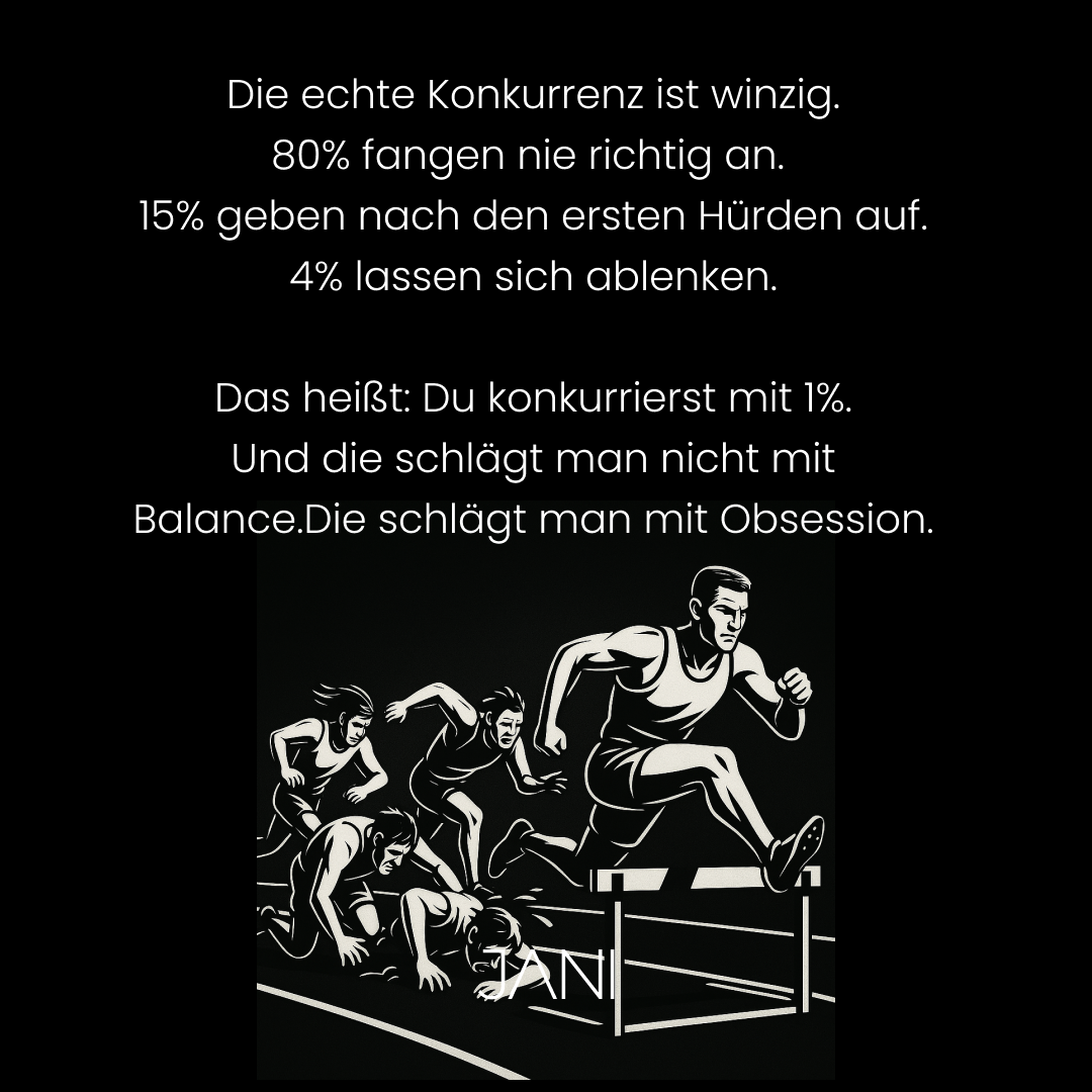 Die ECHTE Konkurrenz sind vielleicht 1-2% der Leute in deinem Bereich. Das sind die, die besessen sind. Die, die durchziehen.