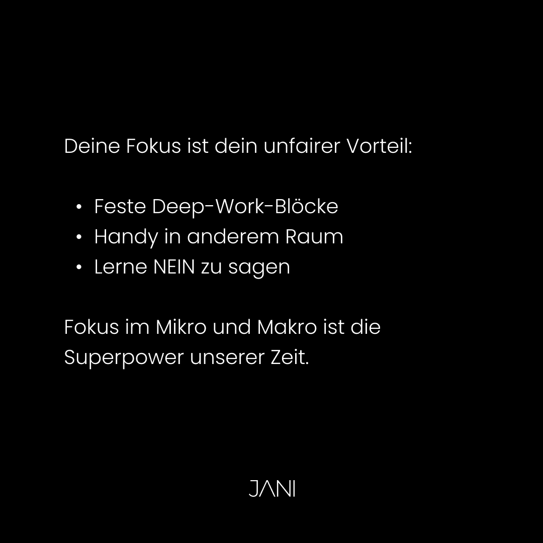 "Deine Aufmerksamkeitsspanne ist das wertvollste Gut, das du besitzt. Die meisten verschenken sie wie Kleingeld. Wer lernt, sie zu bündeln, hat schon gewonnen."