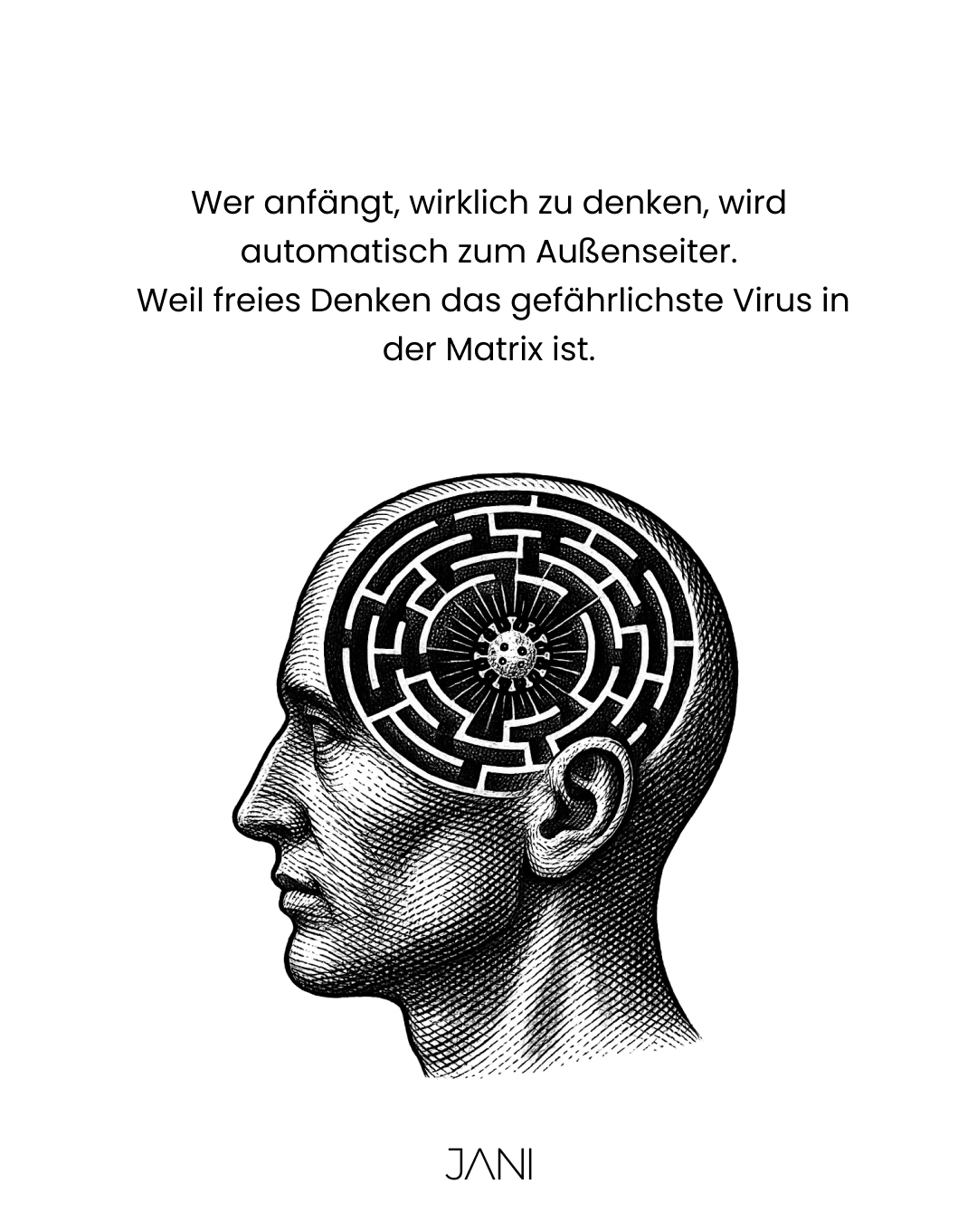 Denn diese Frage ist gefährlich. Sie untergräbt das Fundament, auf dem die gesamte Gesellschaft aufgebaut ist. Wer das tut, wird schnell als "Spinner", "Verschwörungstheoretiker" oder "Nörgler" abgestempelt – und damit isoliert. Die Matrix schützt sich selbst, indem sie Abweichler marginalisiert.